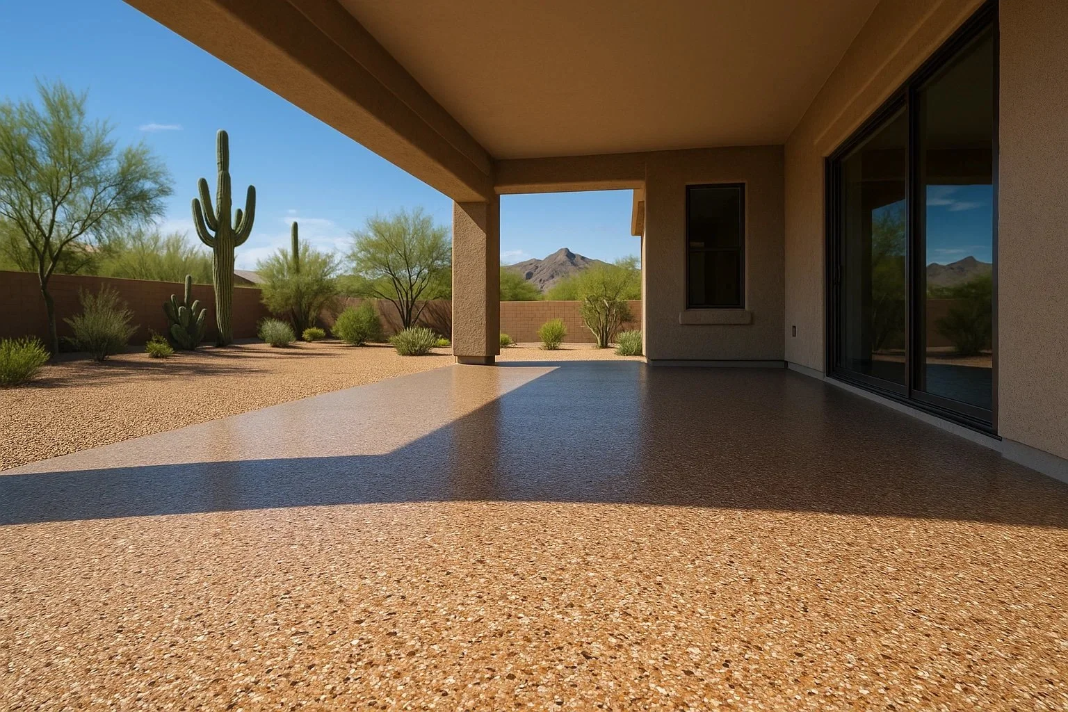 Have tired looking concrete on your patio? Protect your floor while making it pop and shine like nothing else. Our Full Broadcast Flake is high grip, easy to clean, and will last for many, many years to come!